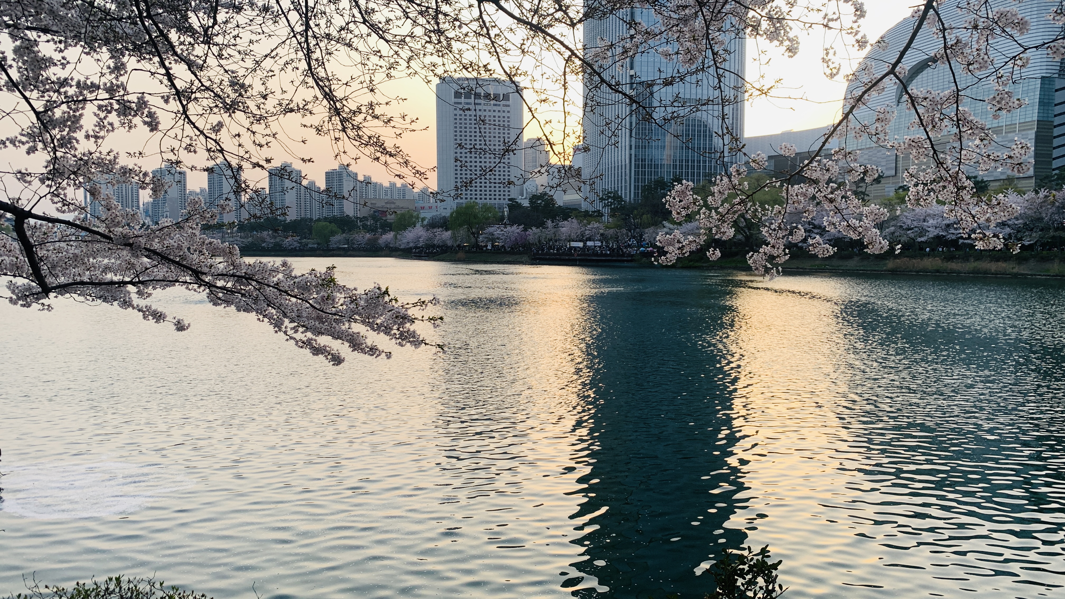 해질무렵의 석촌호수를 둘러봤습니다.