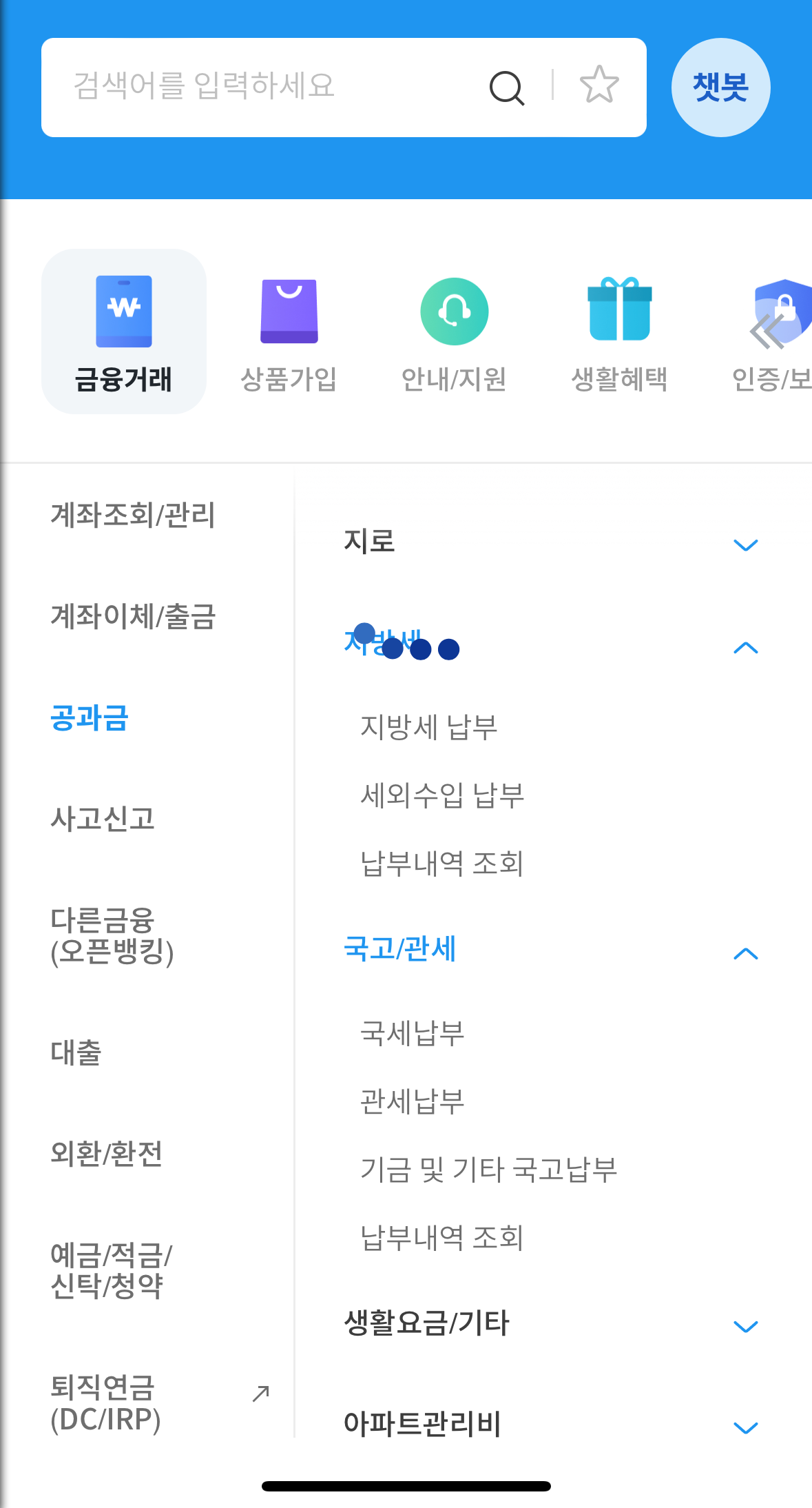 국고 위에 있는 "지방세"를 클릭합니다.