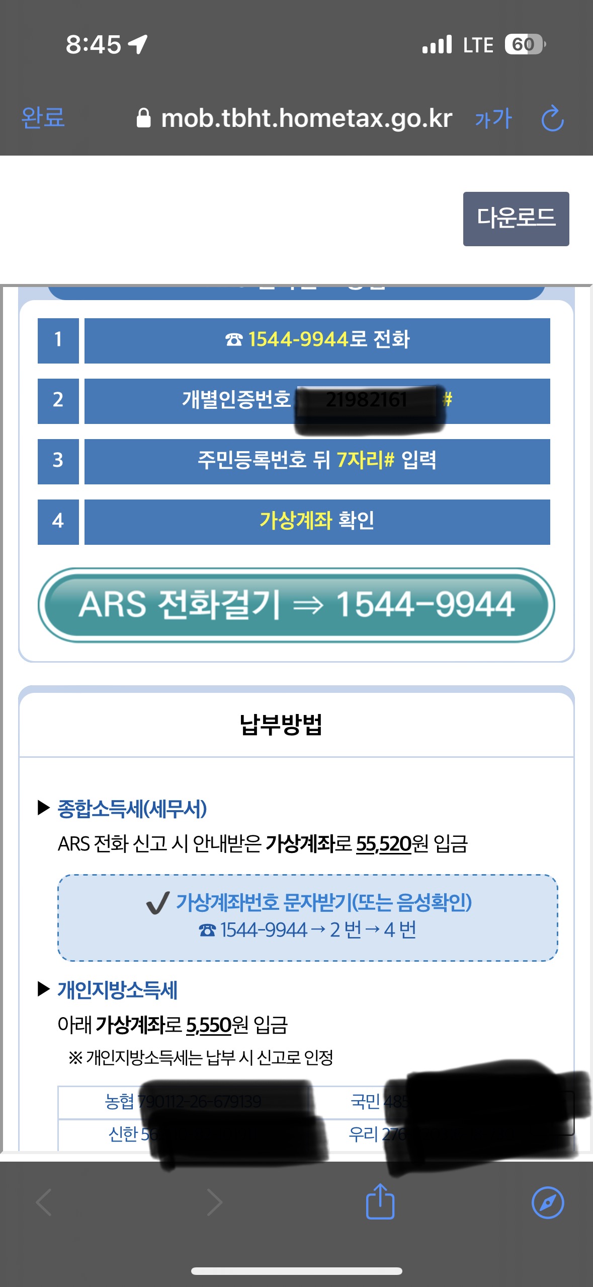 가상계좌 발급 후 납부하기(종합소득세 & 개인지방소득세)
