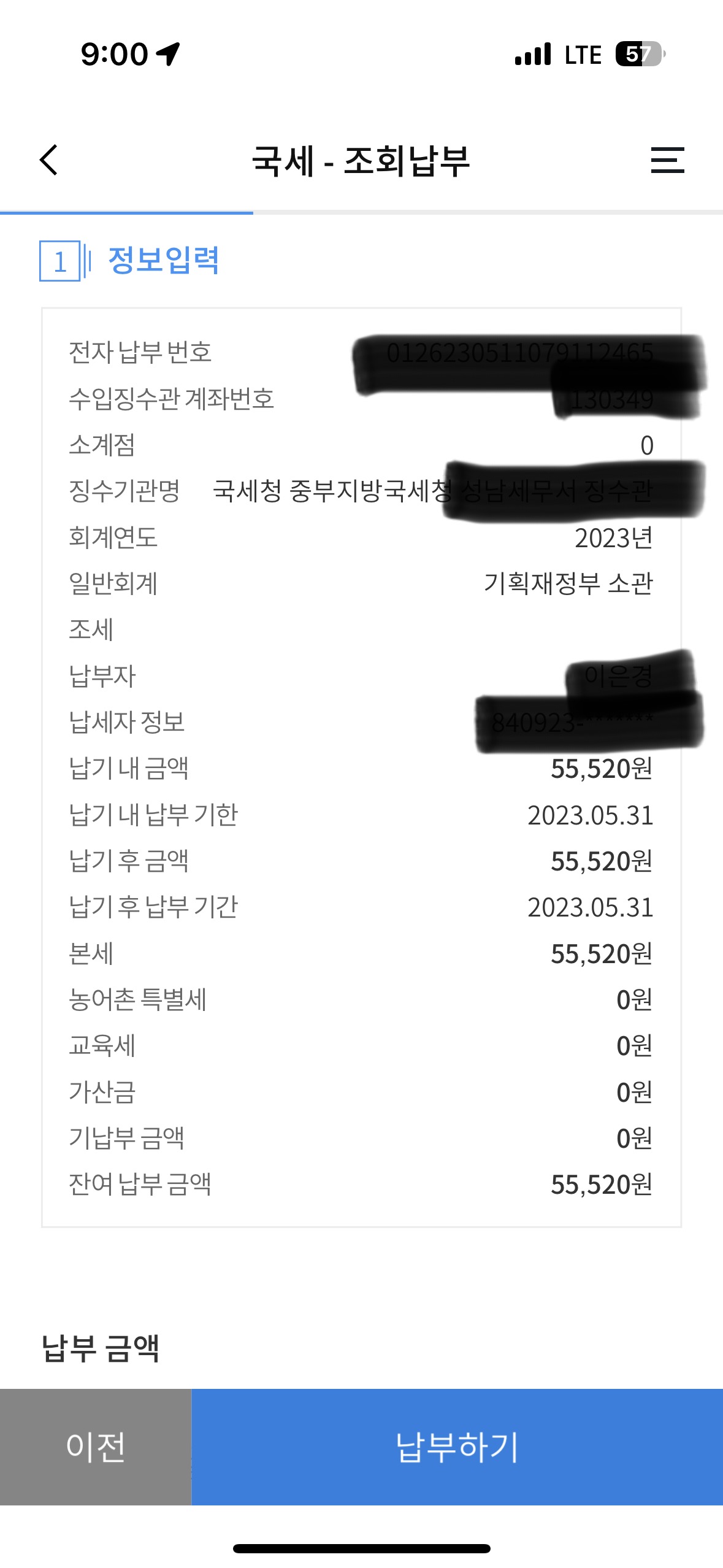 바로 납부해야 할 금액이 뜨더라고요.