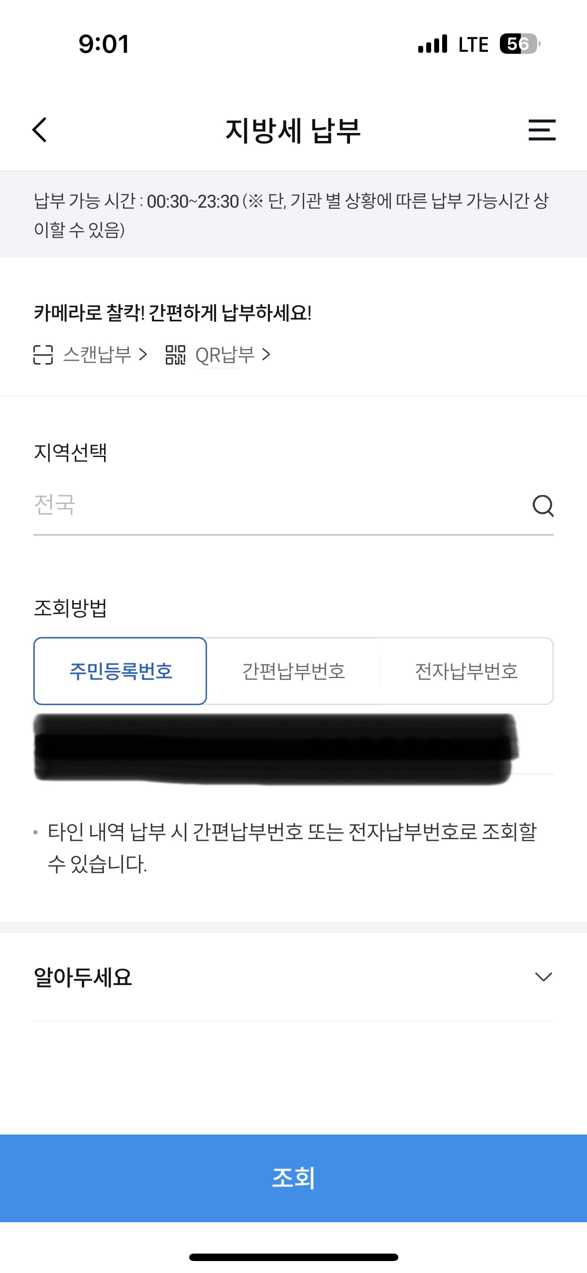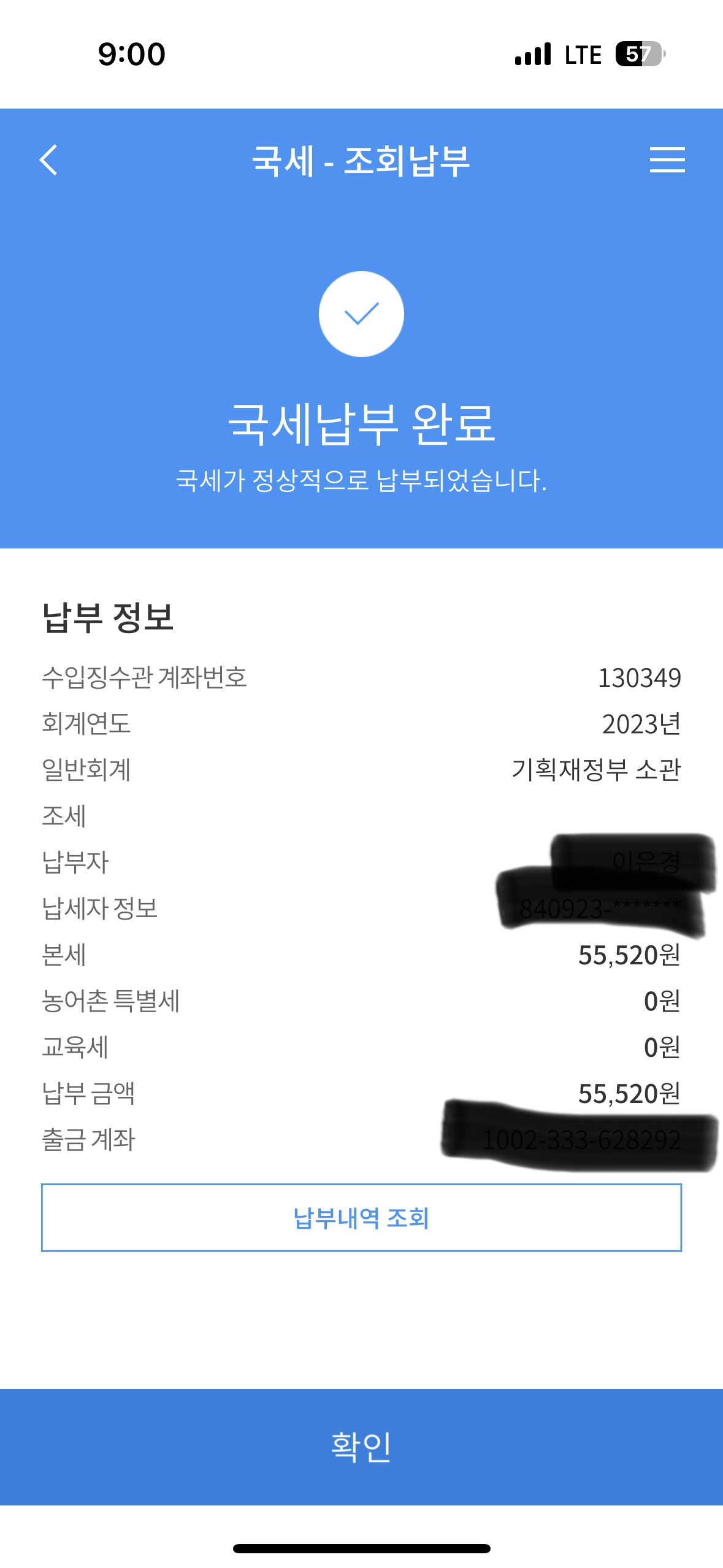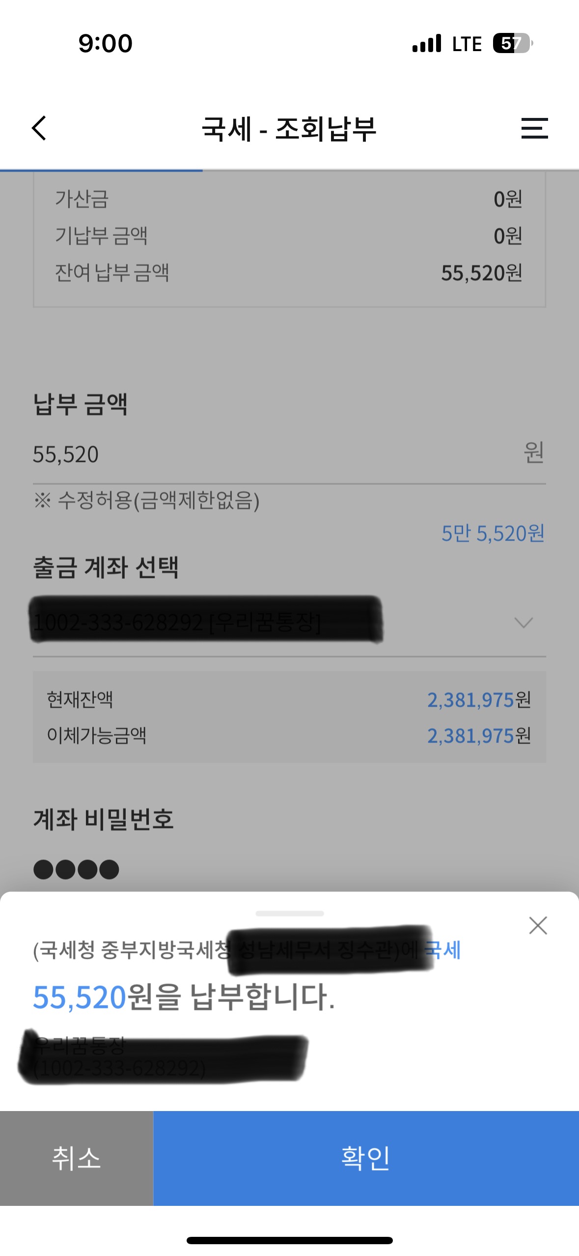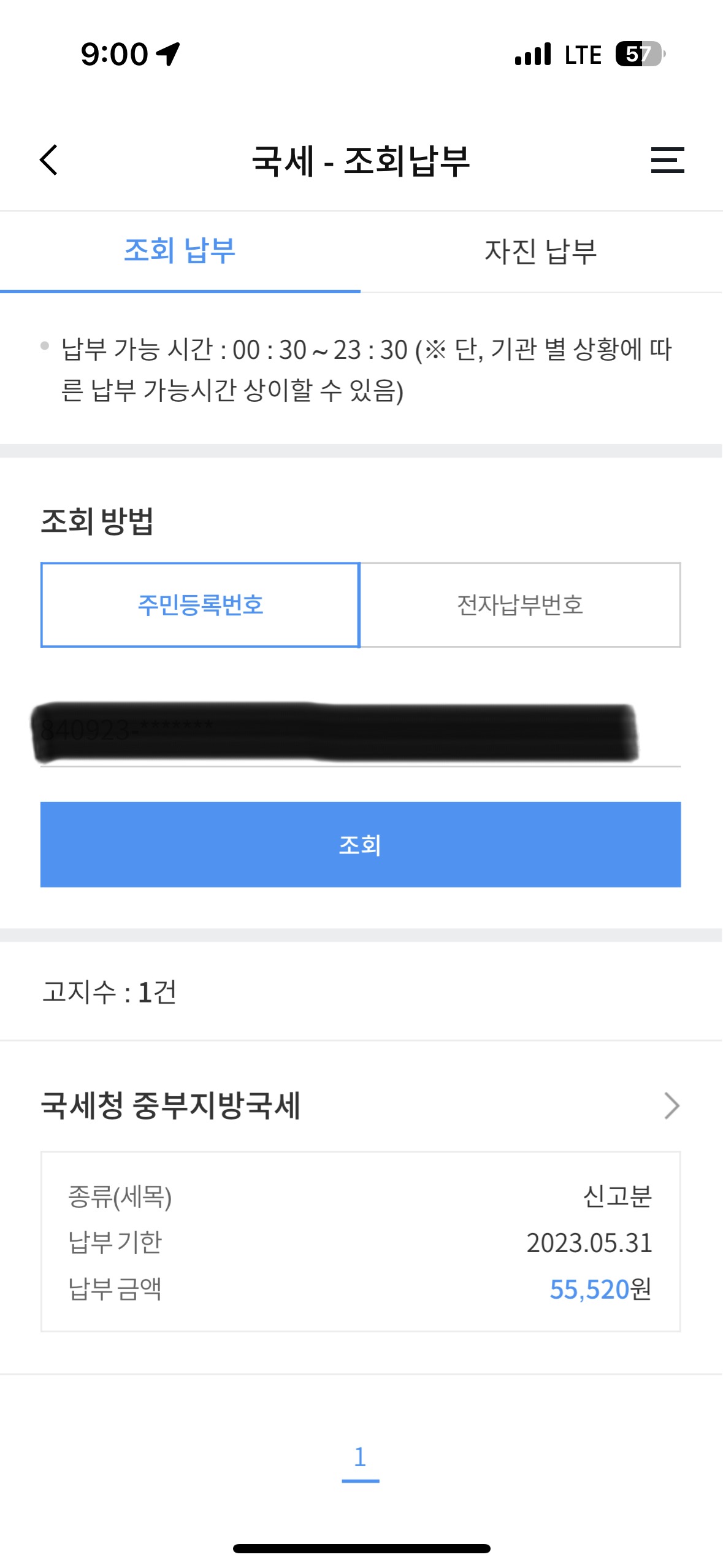 - 주민등록번호 입력 후 금액 확인