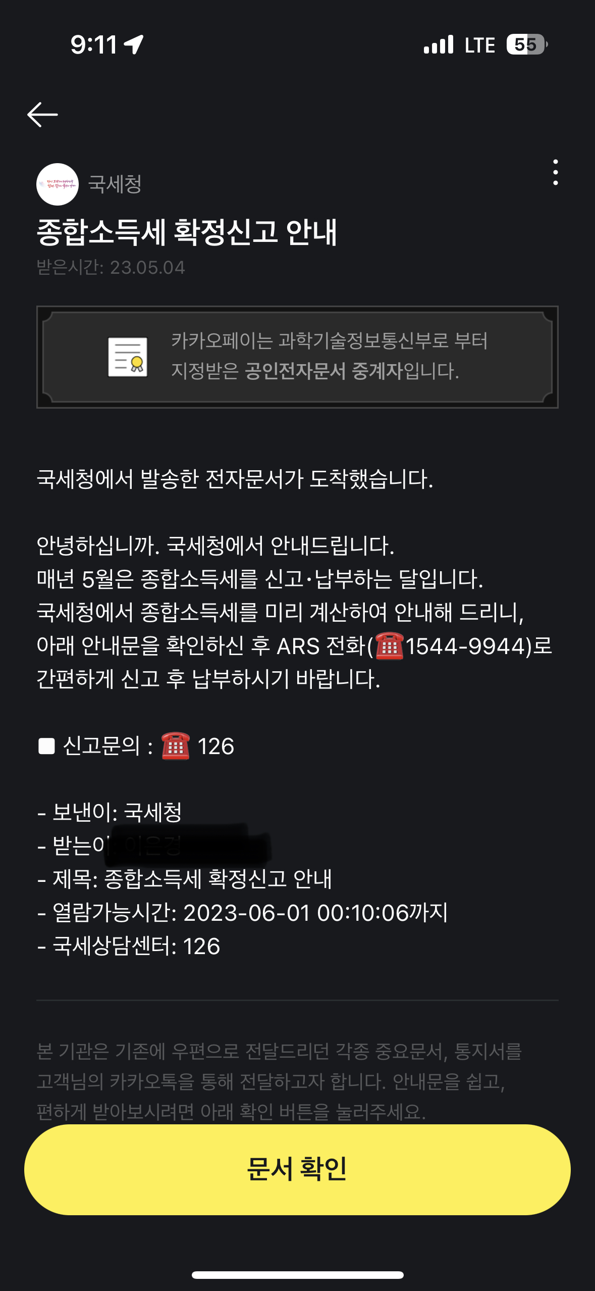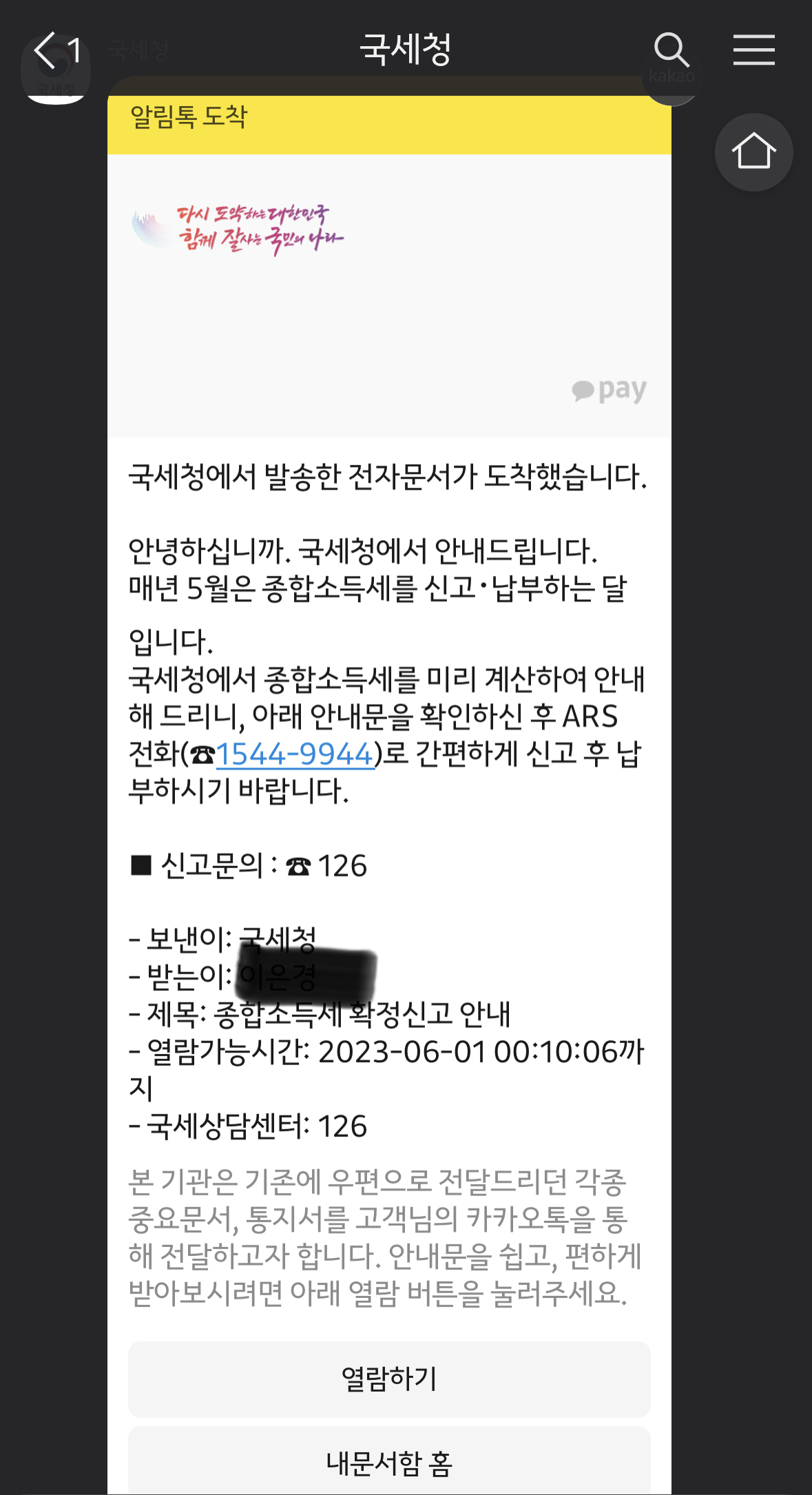 “국세청”으로부터 날아온 기분 좋지 않은