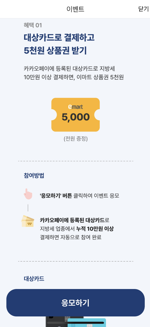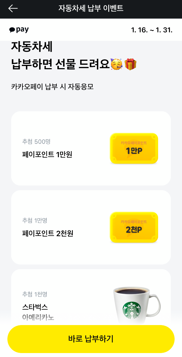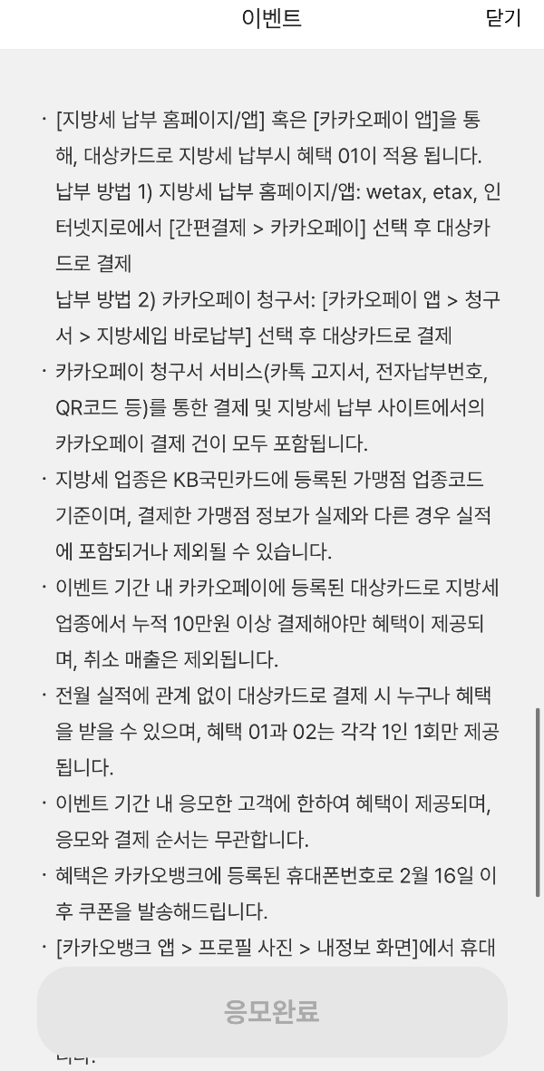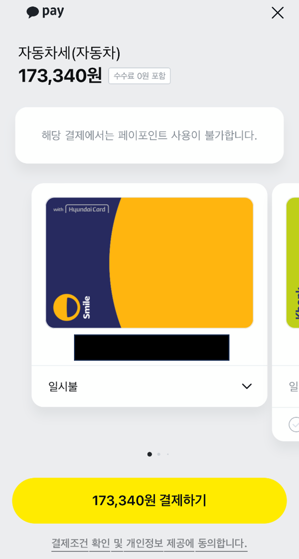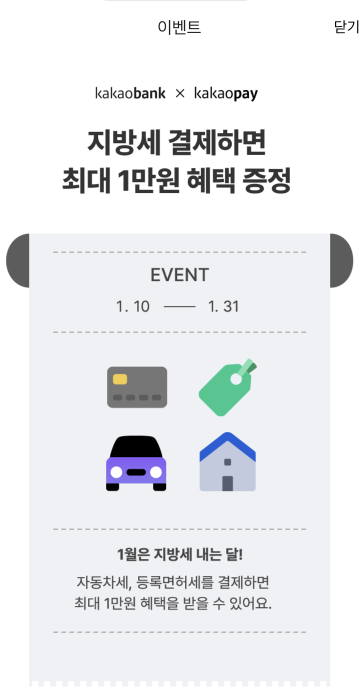 - 지방세납부 홈페이지, 카카오페이 앱을 통해 카카오페이 등록된 카드로 10만 원 이상 결제하면