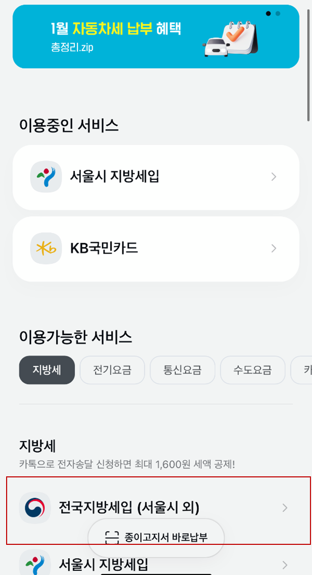 1) 카톡 고지서로 납부