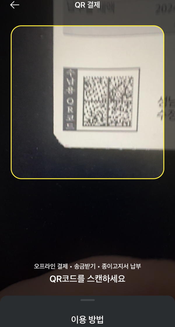 카카오페이 종이고지서 QR이용 결제 방법