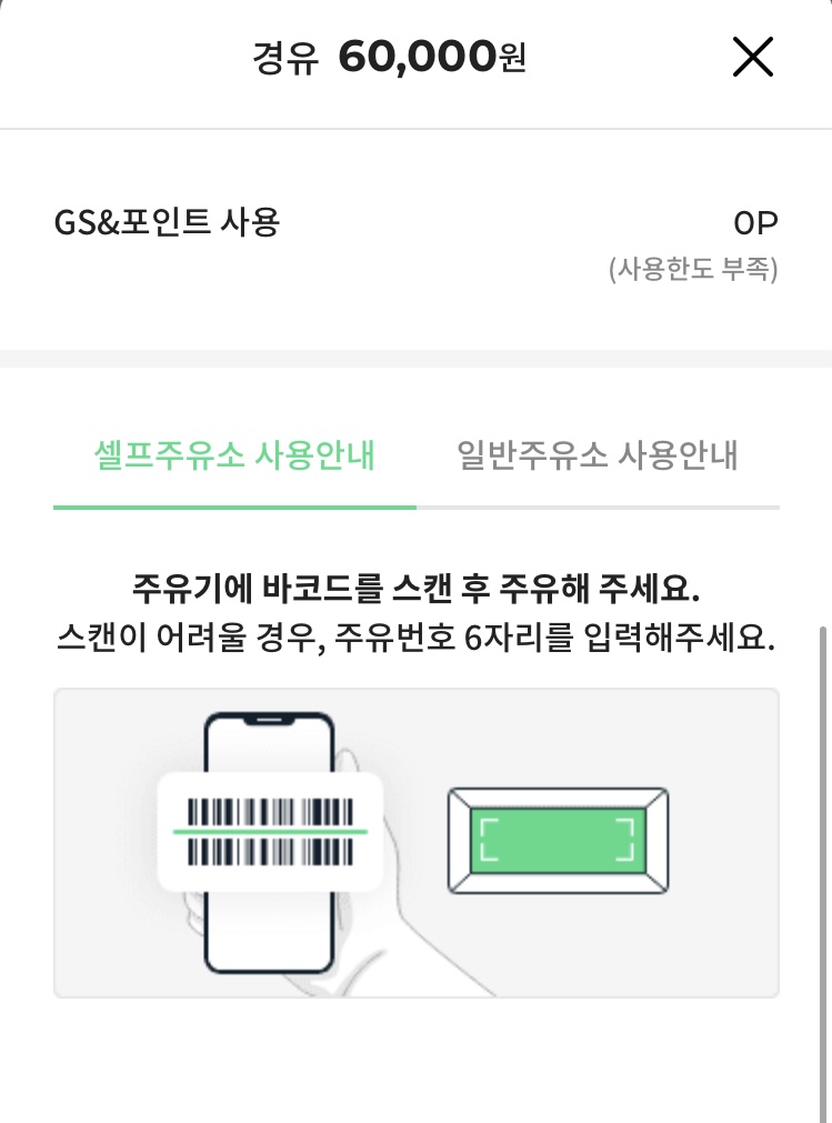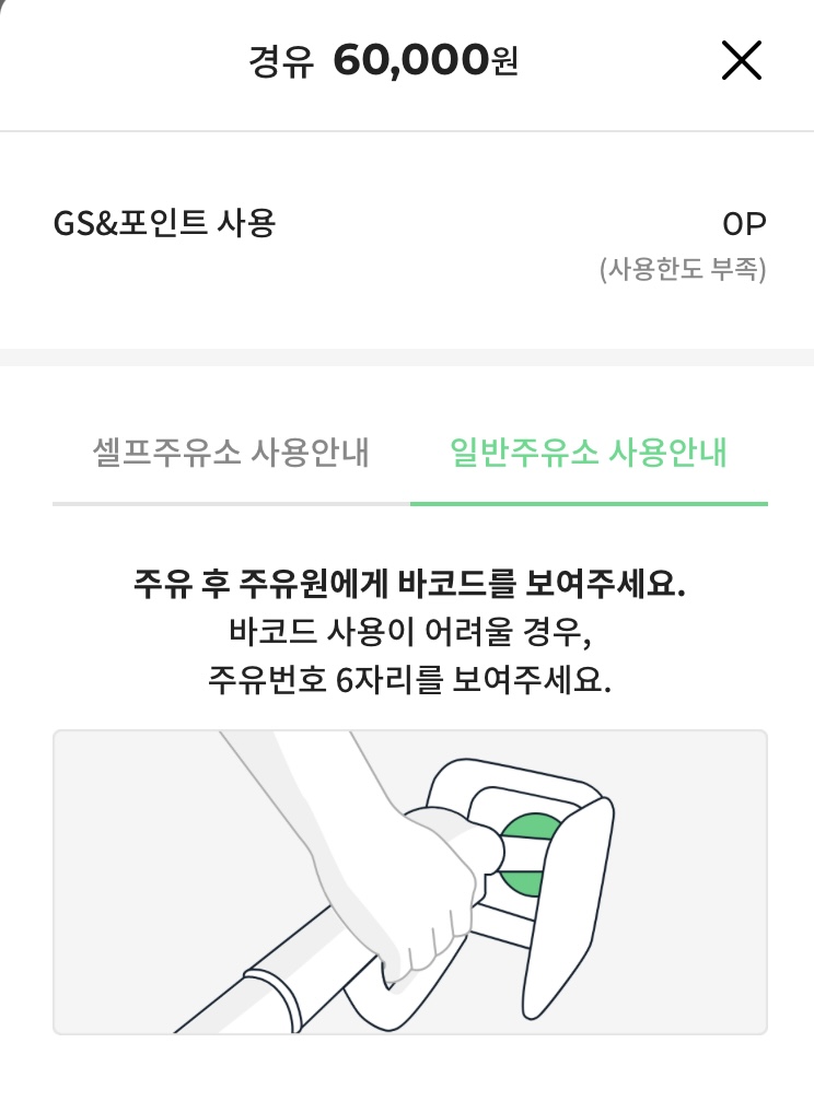 일반 주유소에서는 주유원분에게 바코드를